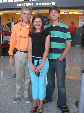 My dad, sister, and me at the Dulles International Airport in DC a few minutes before we got on the plane for Africa! Click